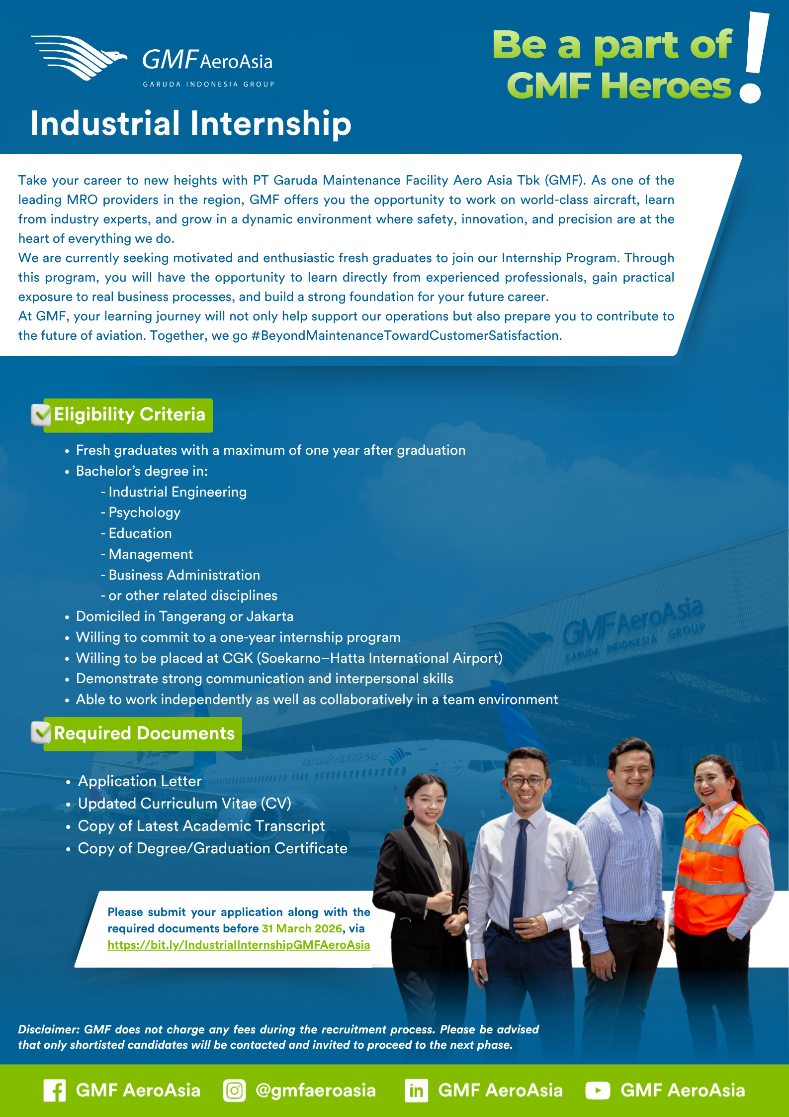 Please submit your application along with the required documents before 31 March 2026 via: https://bit.ly/IndustrialInternshipGMFAeroAsia