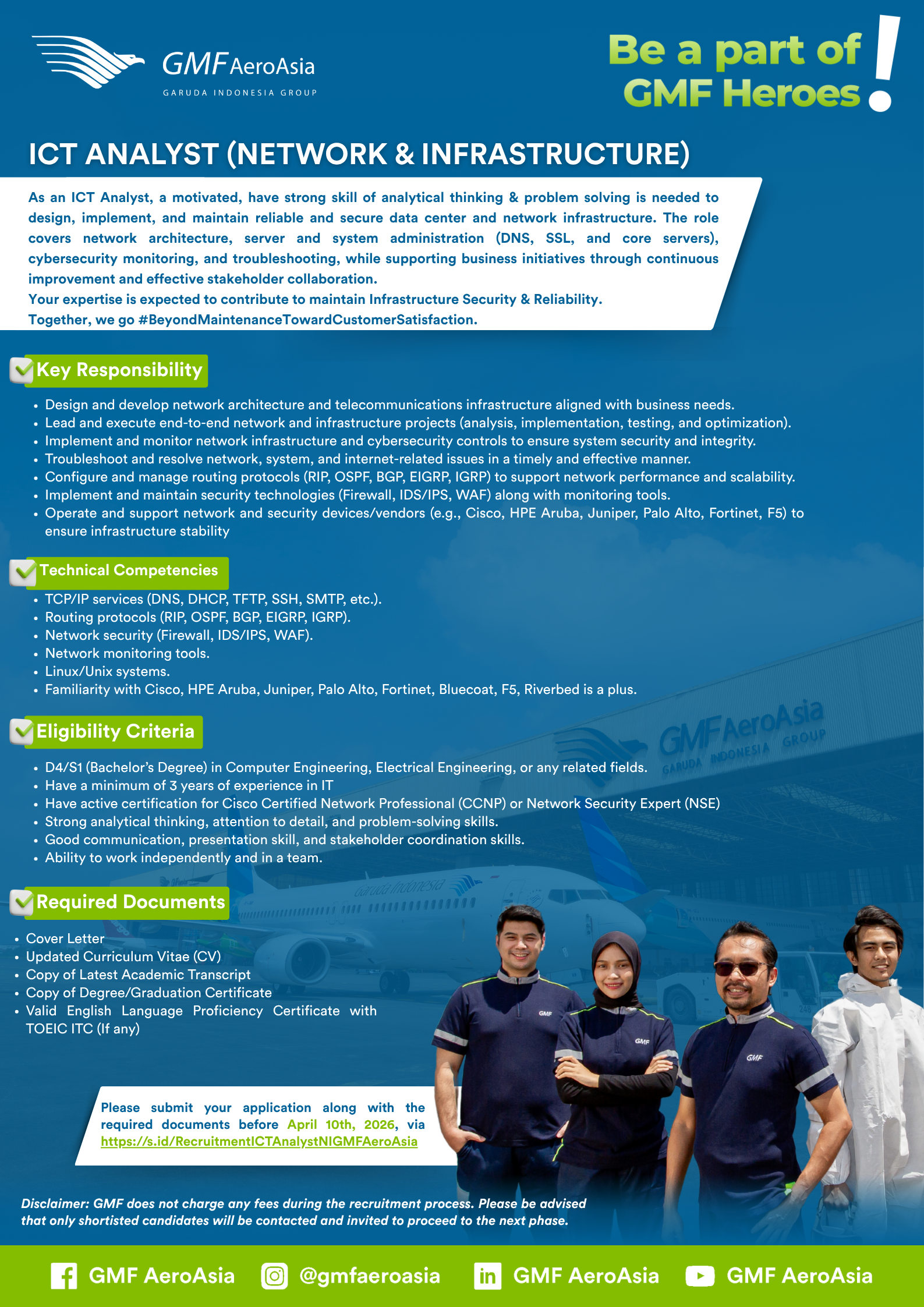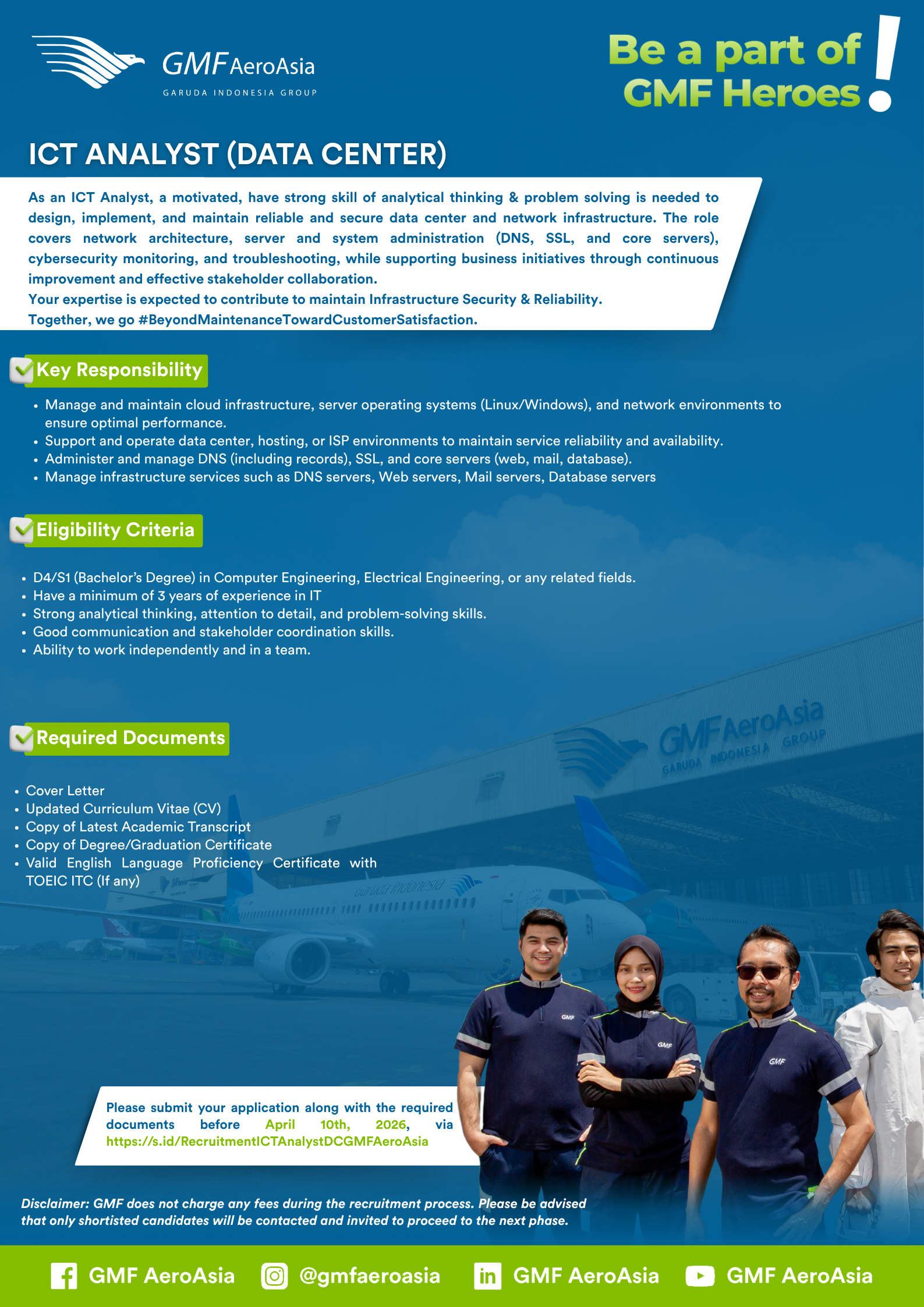 Please submit your application along with the required documents before April 10th 2026, via : https://s.id/RecruitmentICTAnalystDCGMFAeroAsia